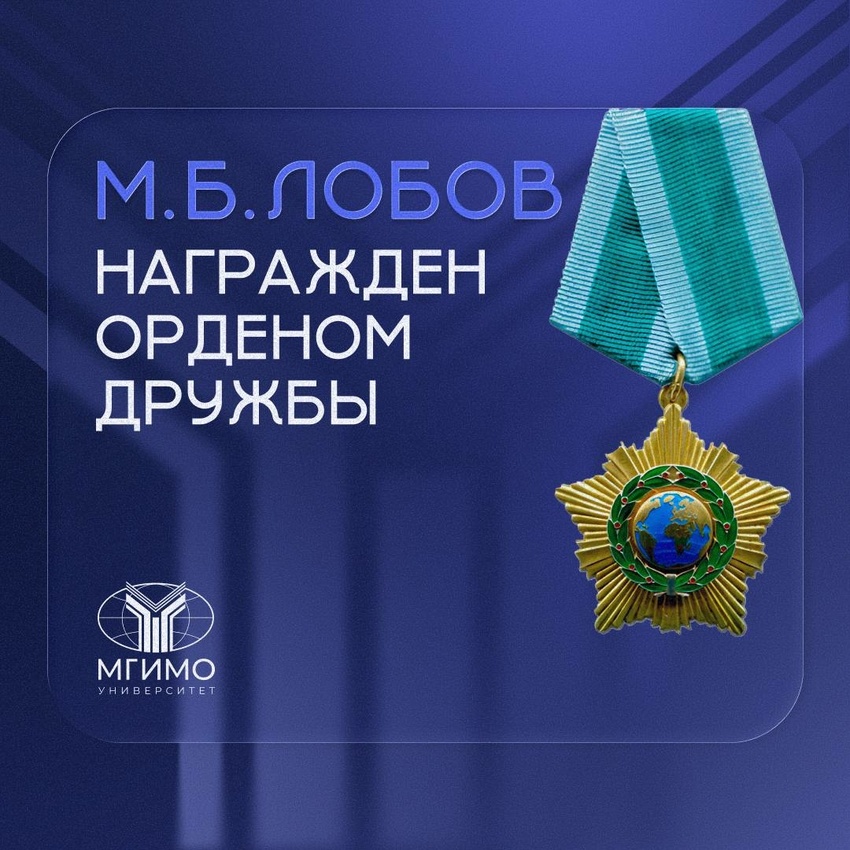 В соответствии с указом Президента России В.В.Путина судья Конституционного Суда Российской Федерации, доцент кафедры интеграционных процессов, выпускник Международно-правового факультета 1992 года М.Б.Лобов награжден Орденом дружбы.